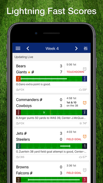 O aplikacji Scores: Dla NFL Football dla iPhone'a
